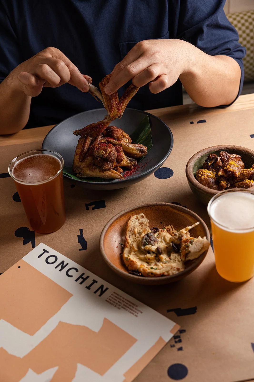 “アメリカのものにはジャパニーズツイストを、ジャパニーズのものにはアメリカンツイストを。そんな僕の発想の原点から生まれたのがシグネイチャーフードのMiso Wingsなんだ。”