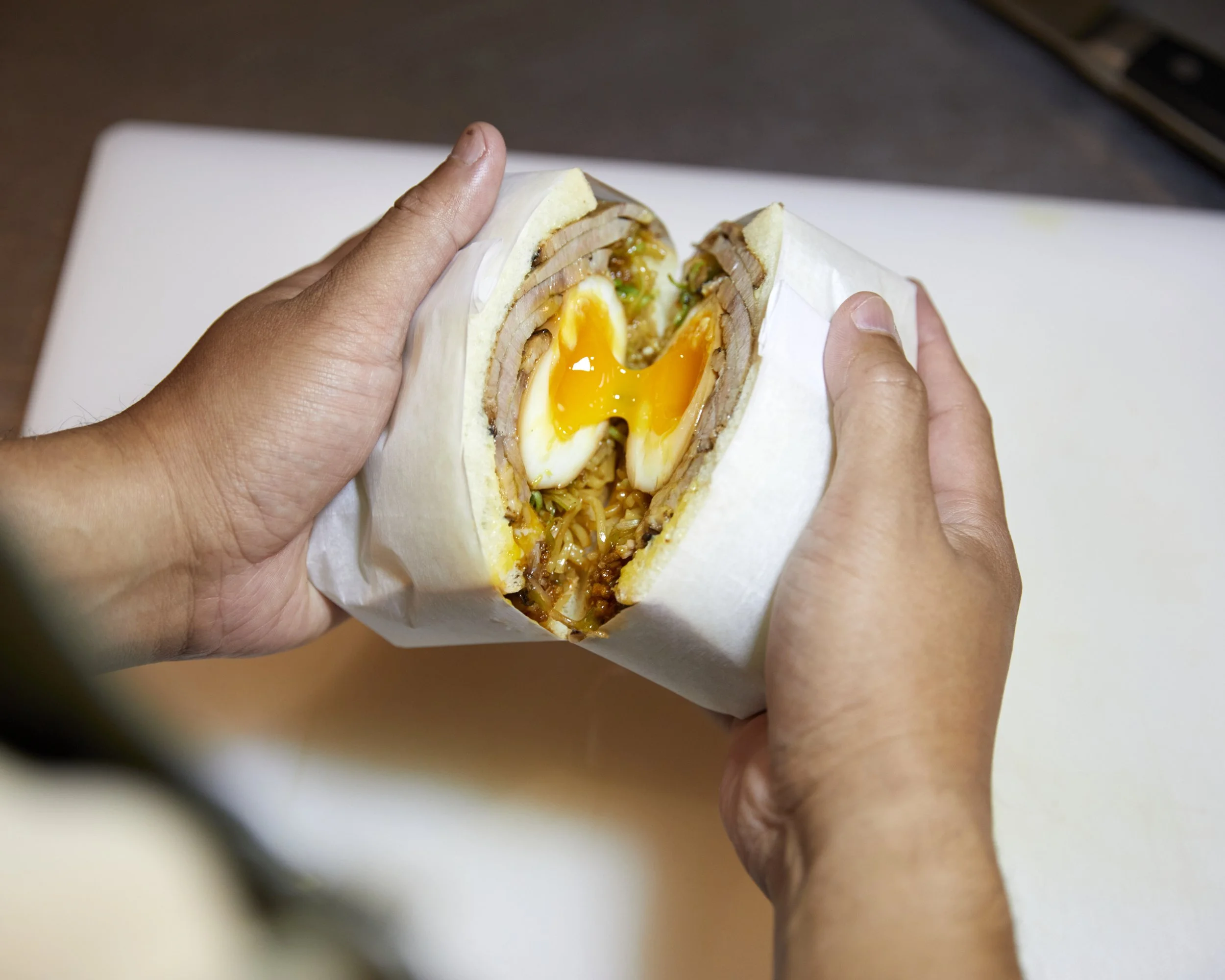自家製食材や上質な日本の調味料による奥行きのある味わいに加え、ディルピクルスやベーグルペーパーなどニューヨークのサンドイッチ文化も取り入れているのもポイント。具材たっぷりのダイナミックな盛り付けと遊び心あるブランディングが、ローカルの心をつかむ人気店。